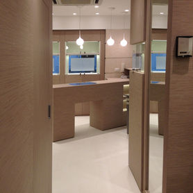 L'atelier est mis en relation avec l'espace vente à travers d'une baie vitrée le long le bureau d'orfèvre.