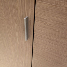 Les nervures du bois en vertical et en horizontal décorent l'espace discrètement sans l'envahir en donnant relief aux bijoux.